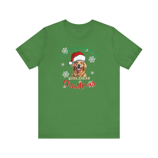 I'm Dreaming Of A Golden Christmas. Unisex Tee with A Golden Retriever Santa Hat Design